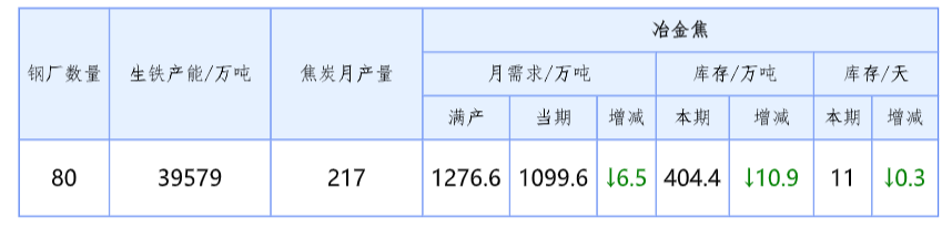 二、部分鋼廠冶金焦庫存匯總(4月6日—4月13日)