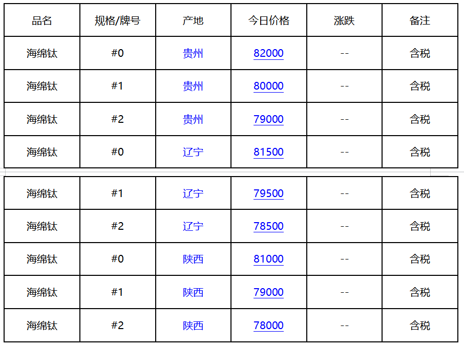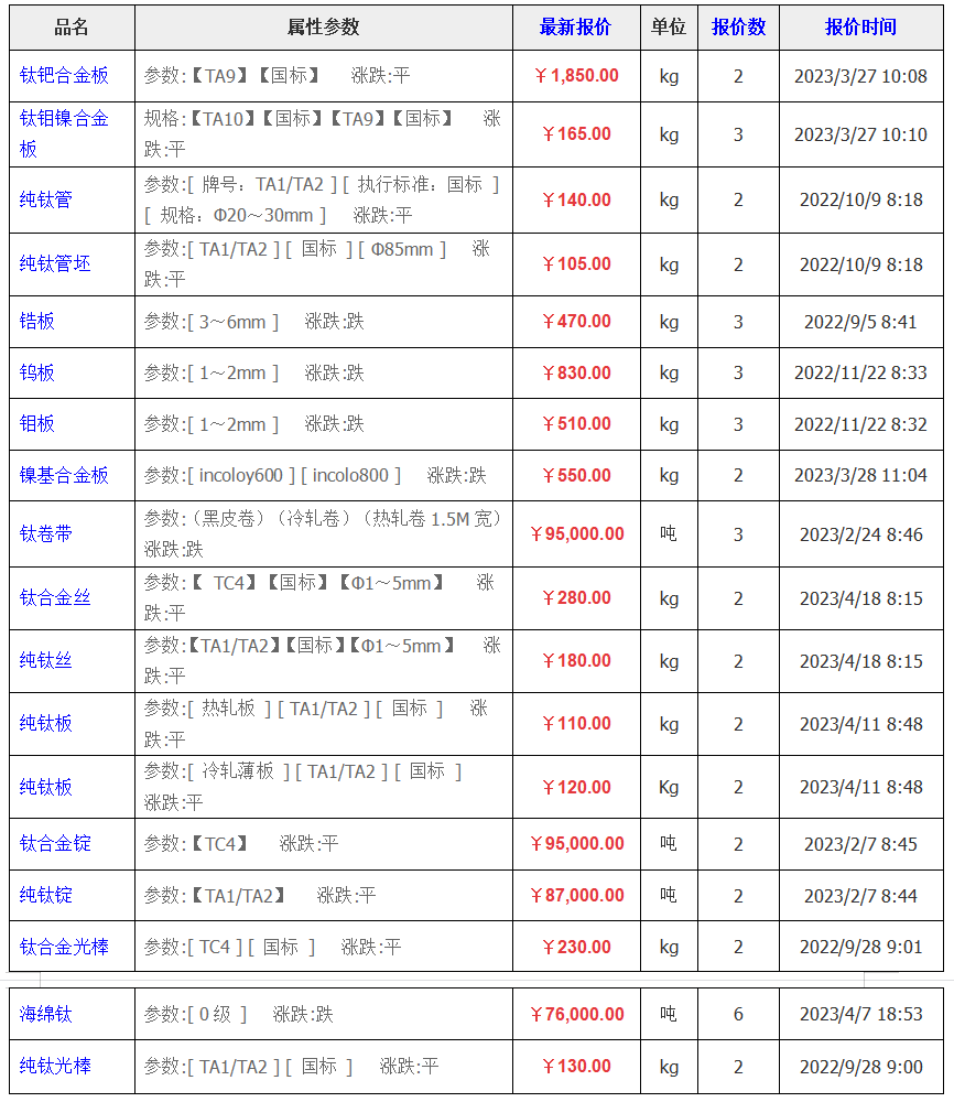 四、鈦精礦、海綿鈦和鈦板近一月價格變化